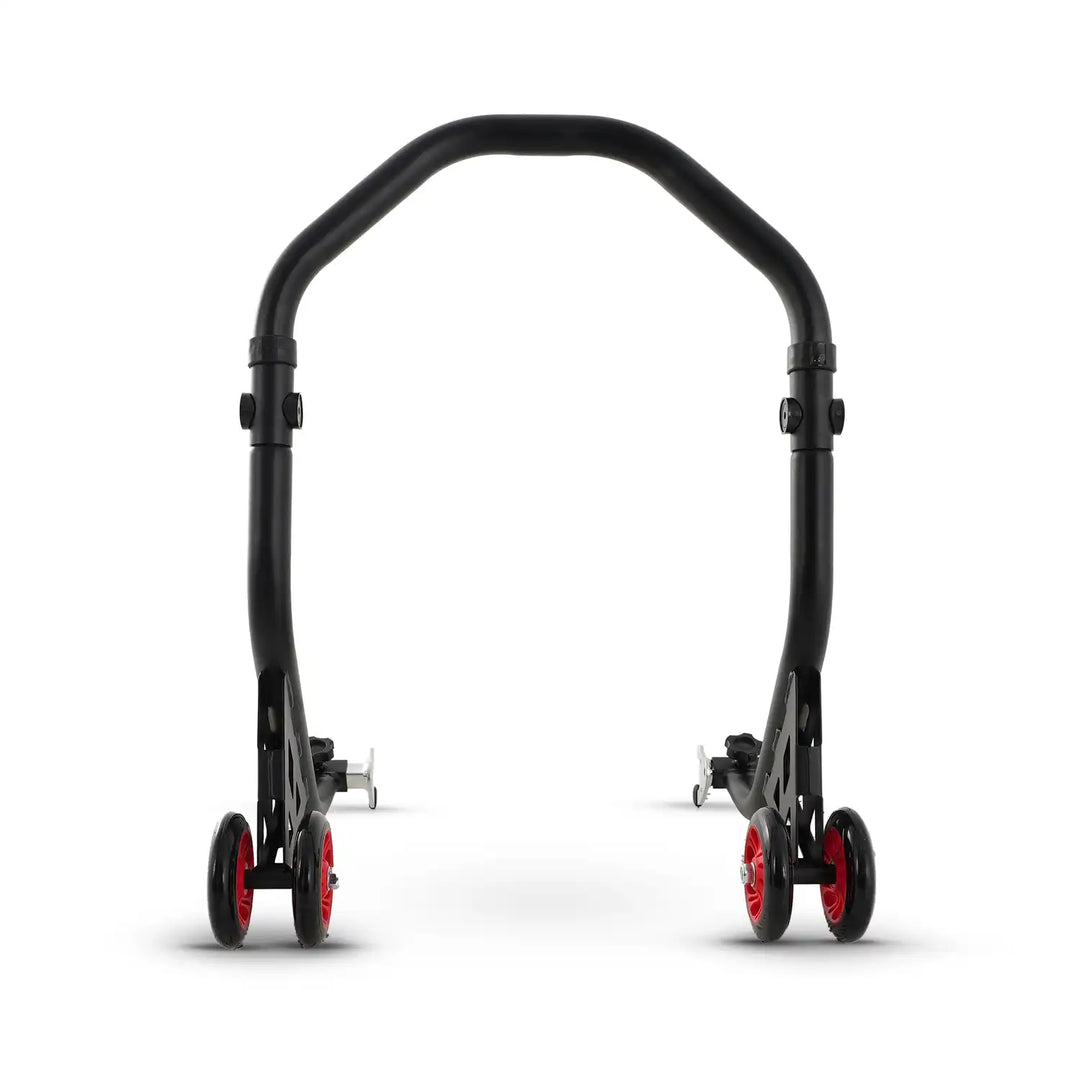 這款工作駐車架展現出極高的強度與穩定性,能承受最高 200 公斤 的重量(一般車輛約需 100 公斤承重),為您的摩托車提供堅如磐石的支撐,讓您在前後輪離地時也能安心作業。