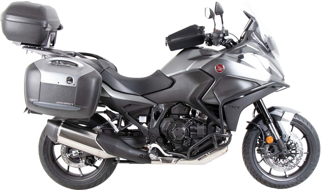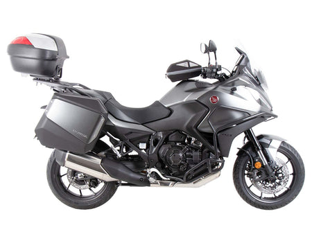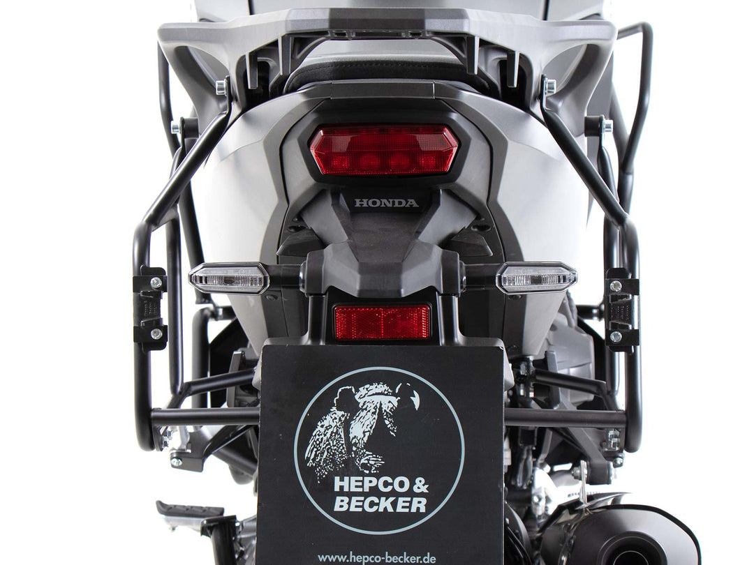 黑色固定式側箱支架專為 Honda NT 1100 (2022-) 設計,並牢固固定於車輛車架上,為幾乎所有 Hepco&Becker 旅行用側箱系統提供穩定的安裝基礎。