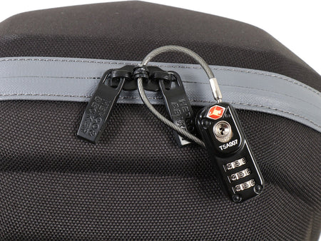 - 油箱包的上蓋可再透過隨附的密碼鎖進一步上鎖。