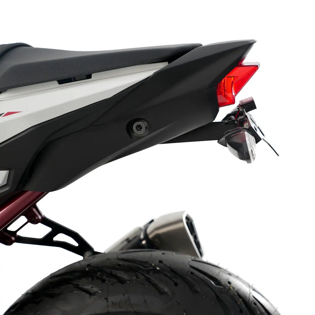 Radically tidy up the rear end of the Honda Hornet CB750 '23- with this Tail Tidy. This Tail Tidy kit has everything you need to replace the obtrusive OEM license plate holder with a sleek, modern unit.