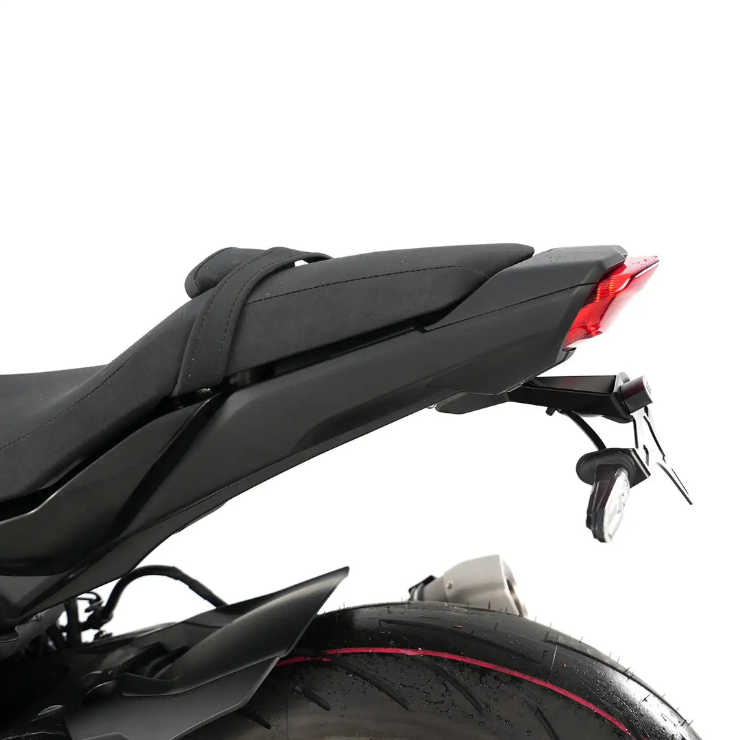 Radically tidy up the rear end of the Yamaha MT-10 '23, MT-10 (SP) '23- models with this R&G Tail Tidy. Its stainless steel and matte black powder-coated construction and design ensures long-lasting durability and performance. R&G tail tidy unit is easy to fit and will radically transform the rear end of the bike, removing the expansive (and often ugly!) OEM licence plate holders - replacing them with a much sleeker looking unit, tucking the number plate underneath the rear seat unit, for a much more stylish sporty look.