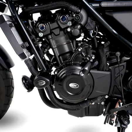 R&G Aero 防倒球採用時尚且具空氣力學設計的 Aero Bobbins,提供黑色款式,適用於 Honda CMX500 Rebel (S) (2017-) 與 CL500 (2023-2024) 車型。